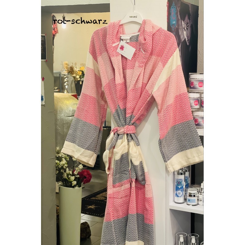 Der exklusive Bademantel ist aus 100 % Baumwolle und nur bei B two by M & M Cosmetics zu bekommen.