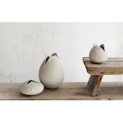 Ob als Einzelstück oder in Kombination mit anderen Deko-Gefäßen - die moderne Vase der Serie carve macht in jeder Umgebung eine gute Figur. Der Sandton verträgt sich hervorragend mit gedackten, wie auch knalligen Farben, die matte Oberflächenlasur trägt dabei zusätzlich zur Sandoptik bei. Die außergewöhnliche Öffnung erinnert an Risse, hierdurch können zum Beispiel bunte Tulpenköpfe, imposante Lilienblüten oder schlichte Grünzweige in die Höhe ragen. Die Vase besteht aus Steinzeug und wurde von Hand gefertigt. Sie ist 22 cm hoch und 15 cm breit.