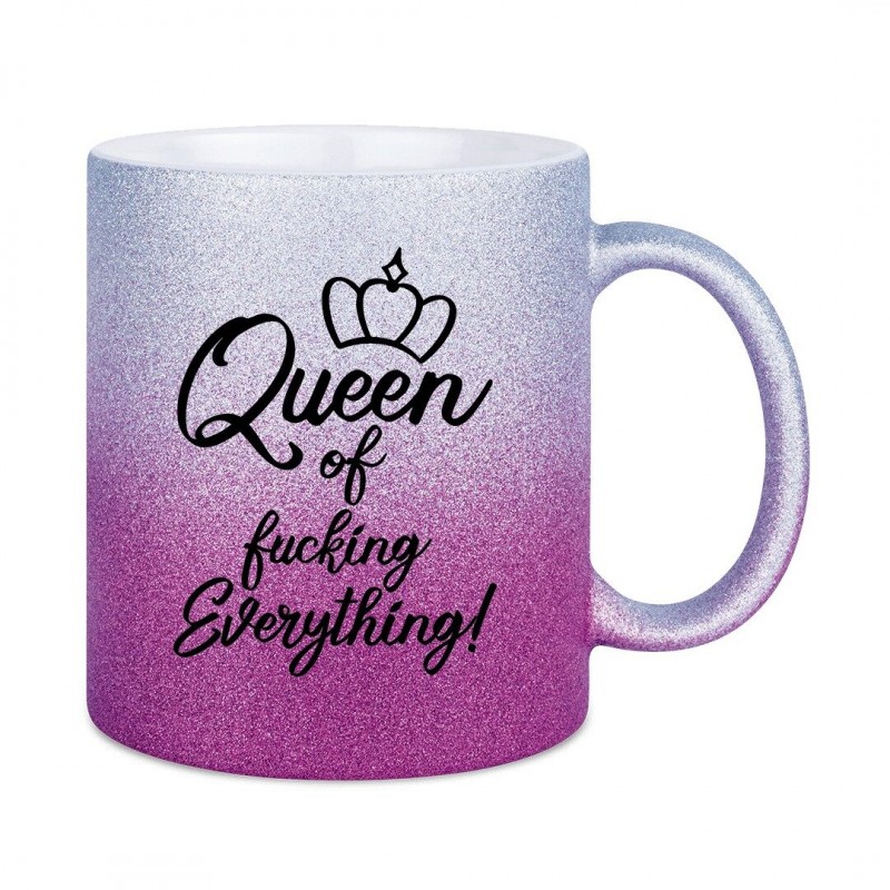 Beschreibung Queen of f.... (Violettgold) Hochwertige Keramiktasse, Innenseite weiß, raue und glitzernde Oberfläche, Mikrowellengeeignet, Handspülung empfohlen