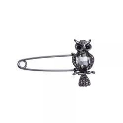 Anstecknadel mit Eulenmotiv und schwarzen Strasssteinen