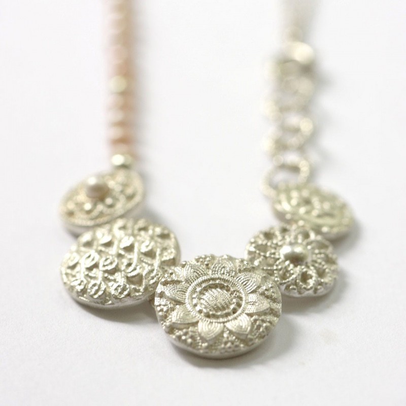 ZEEUWSE KETTING MET 5 ORNAMENTEN EN ROZE PARELS