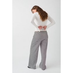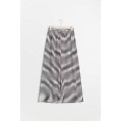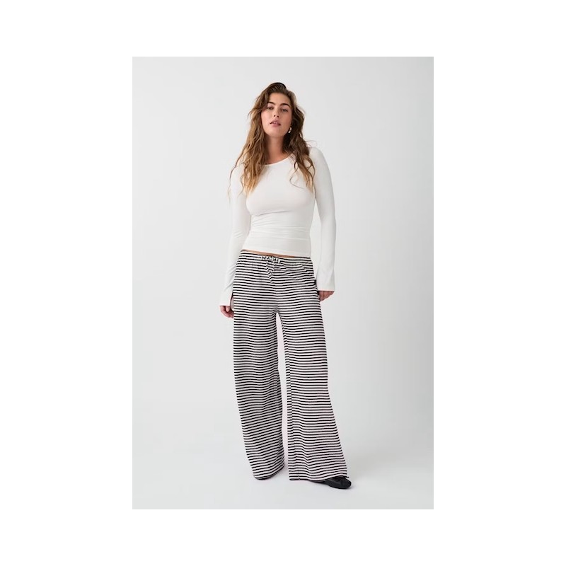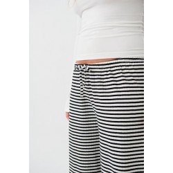 Grösse M-Gestreifte Hosen mit tiefer Taille. Die Hosen sind weiβ, schwarz und gerade. Sie haben weiche Qualität, Kordelzug in der Taille und normale Länge.