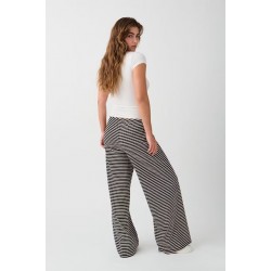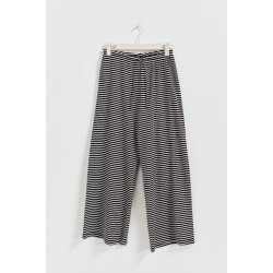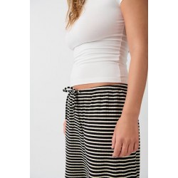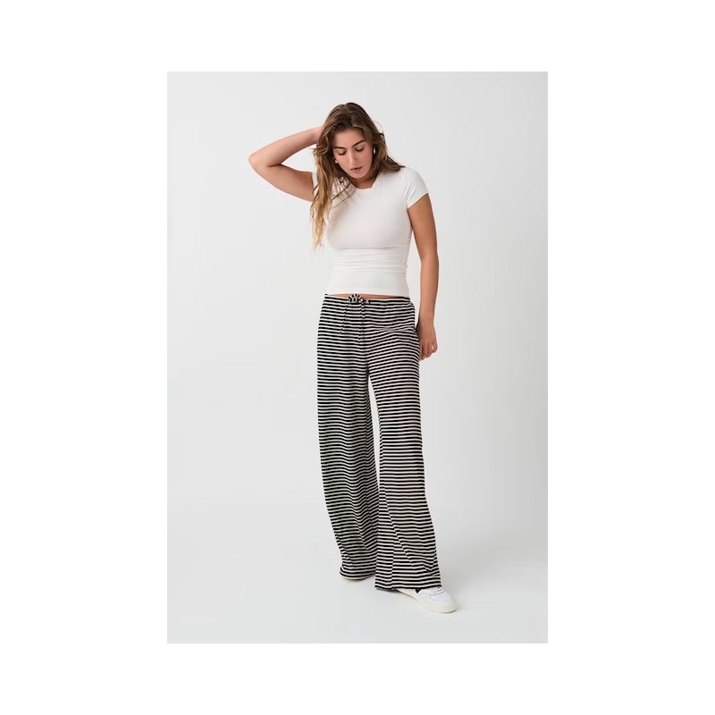 Grösse M-Gestreifte Hosen mit tiefer Taille. Die Hosen sind schwarz, weiβ und gerade. Sie haben weiche Qualität, Kordelzug in der Taille und normale Länge.