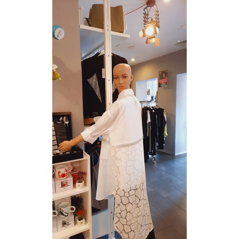 aussergewöhnliche Bluse als Kleid hinten mit Beigefarbenen Muster und einem Glitzer Abschluss von B two Cosemtics