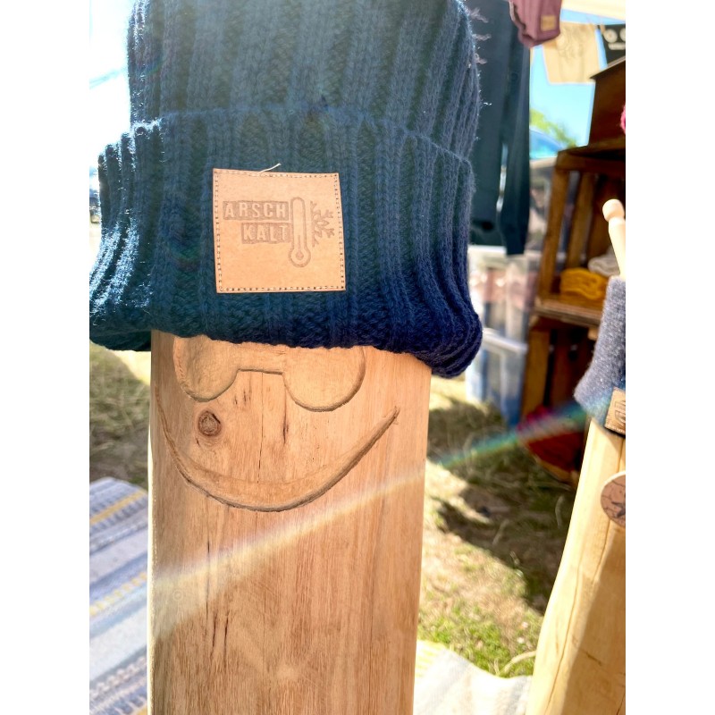 nachhaltig im und auf dem Kopf...Beanie aus recyceltem Polyester mit Patch aus Veganer Leder.
