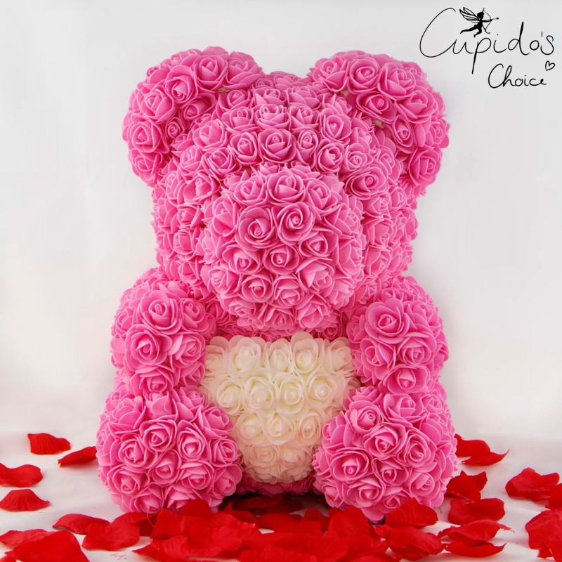 GROTE ROZEN BEER ROZE MET WIT HART 40CM