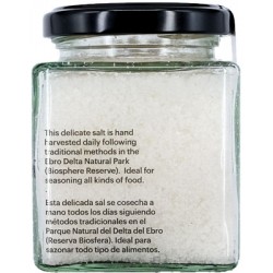 Dieses delikate Salz wird jeden Tag von Hand nach traditionellen Methoden im Naturpark Delta del Ebro (Biosphärenreservat) geerntet. Ideal zum Würzen aller Arten von Lebensmitteln. Dieses Salz wird von Hand von der Oberfläche der Salzteiche gesammelt, wobei die in der oberen Schicht gebildeten Salzkristalle erhalten werden. Meersalz mit einem delikaten Geschmack, einer leichten und feuchten Textur und einem hohen Mineralgehalt wird von Köchen und Gastronomieexperten am Ende der Zubereitung von Speisen und sogar am Tisch selbst verwendet.