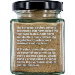 Das 5. Aroma, eine subtile Sinneserfahrung, die die vier Grundaromen harmonisiert. Verleihen Sie Fleisch, Fisch, Gemüse, Suppen und Salaten Geschmack und Tiefe. Ing .: Gemüse + Pilze + Algen + Salz + Gewürze. Ideal zum Würzen aller Arten von Lebensmitteln.