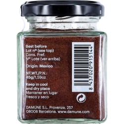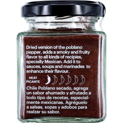 Die getrocknete Version des Poblano-Pfeffers verleiht allen Arten von mexikanischem Essen einen rauchigen und fruchtigen Geschmack. Fügen Sie es Saucen, Suppen und Marinaden hinzu, um seinen Geschmack zu verbessern. Chile Ancho, einer der beliebtesten Chilischoten in der mexikanischen Küche. Es ist eine wichtige Zutat in Marinaden, Maulwürfen und Saucen für Enchiladas und Salsas; und besonders im mexikanischen Maulwurf, im Wedding Asado oder im Wedding Stew, um nur einige zu nennen. Ancho Chili kann trocken oder rehydriert, ganz oder gemahlen verwendet werden. Glas mit abnehmbarem Deckel (so dass der Kontakt mit der Luft und den äußeren Elementen so weit wie möglich vermieden wird). Messungen: 5 * 5 * 6,7 cm.