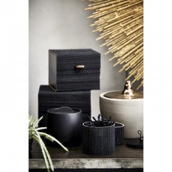 Trendy Glas in Schwarz mit Deckel, entworfen mit Text und einem schönen Porzellan-Look, inspiriert von Art Déco. Dieses Marsia Glas misst H10xØ11 cm und ist ideal zur Aufbewahrung von Kleinigkeiten im Badezimmer, wo es praktisch und dekorativ zugleich sein wird. Verwenden Sie es für Schmuck, Wattestäbchen, Wattepads oder das, was Sie gerne wollen. Bei Lene Bjerre haben wir ein breites Sortiment an einzigartigen Gläsern und Schalen, wo Funktionalität und Design im Fokus stehen. Wir präsentieren daher eine Palette an tollen Schalen und Töpfen, um sicherzustellen, dass für jeden etwas dabei ist.