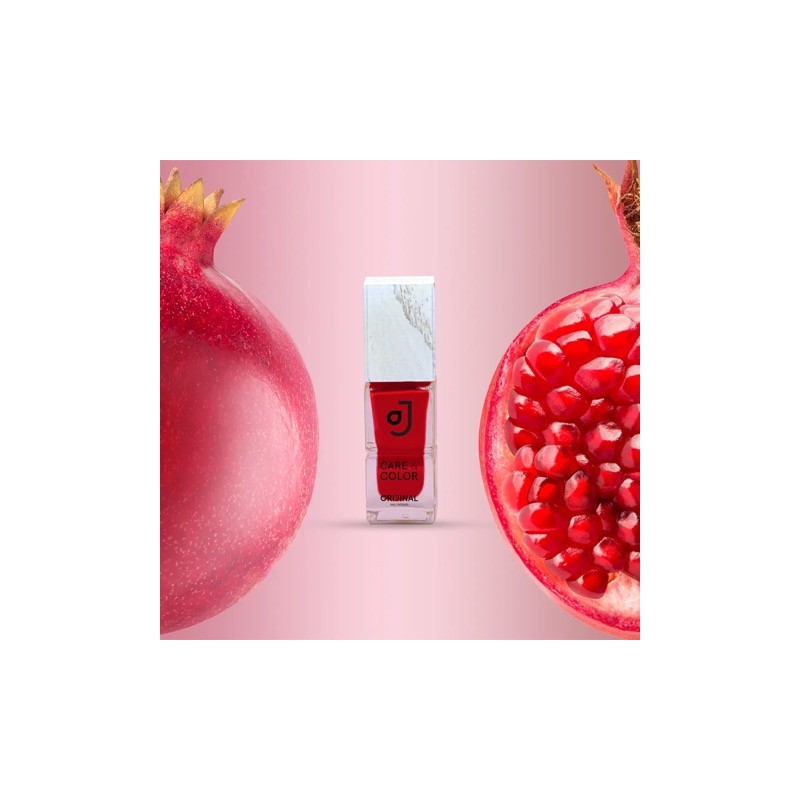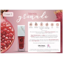 Ein intensives Rot, inspiriert von der Farbe des Granatapfels. Granatenlack ist mit Bio-Sellerie und Granatapfelextrakt angereichert. Echte Nagellackpflege,