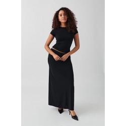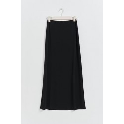 Maxirock mit tiefer Taille. Der Rock ist schwarz.