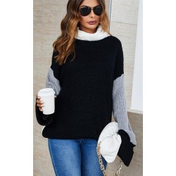 Farbblockpullover In Weiß & Schwarz & Grau-one Size