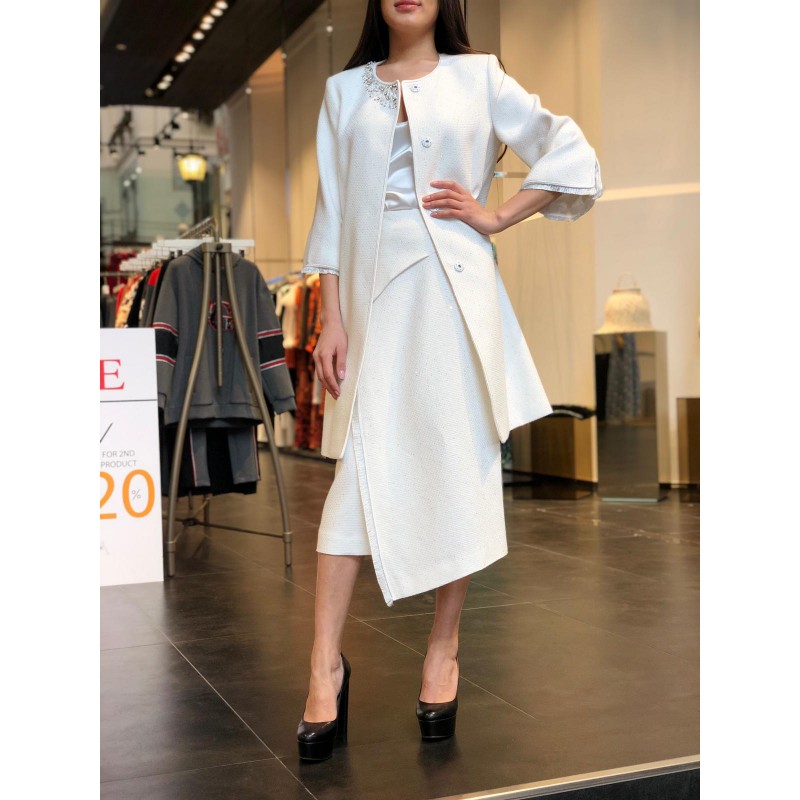 Gizia steht für Luxuriöse Mode made in Istanbul. Dieser Aussergewöhnliche Mantel unserer Luxus Marke GIZIA ist ein Traum aus wundervollen Materialien in ECRU mit gold Fäden je nach Licht Deinen Auftritt perfekt machen. dazu passendes JacketM4C093 Jacket ECRU Glitzer